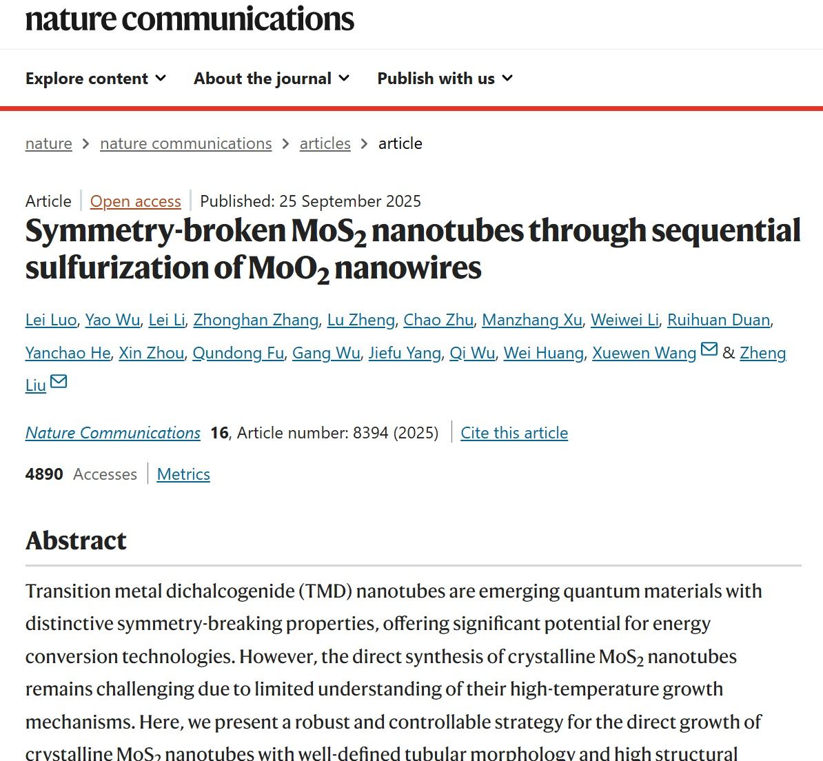 Symmetry-broken MoS2 nanotubes through sequential sulfurization of MoO2 nanowires