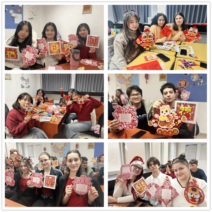 The event officially began with a lecture The culture of New Year’s Day and the Spring Festival. Through vivid explanations and richly illustrated presentations, teachers introduced international students to the profound cultural heritage of the Chinese New Year. From traditional customs associated with New Year’s Day and the Spring Festival to their intergenerational cultural transmission, from the symbolism of reunion embodied in the New Year’s Eve dinner to the auspicious meanings of Spring Festival couplets and paper cuttings, students were gradually guided to decode the cultural symbols embedded in Chinese festivals, gaining a deeper understanding of the Chinese people’s emphasis on family, reunion, and hope for the future.