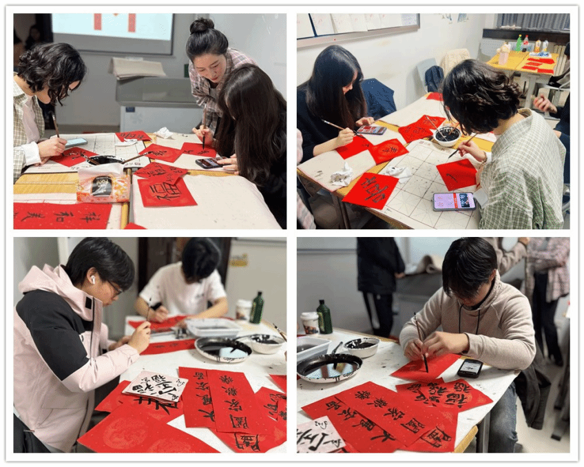 “As firecrackers thunder, the old year passes; the gentle spring breeze ushers in the New Year, and people celebrate together over cups of freshly brewed Tusu wine.” During the classical poetry recitation session, students, guided by their teachers, carefully recited ancient poems related to the New Year, word by word and line by line. They then wrote poetic lines and personal New Year goals on wish cards. Each stroke reflected not only their growing closeness to Chinese culture but also their sincere expectations for the year ahead.