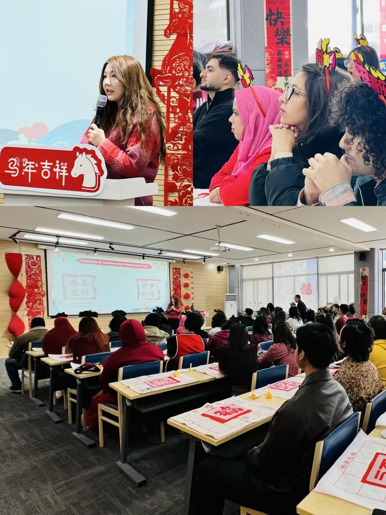 The event kicked off in a warm and lively atmosphere. Teacher Li Jing first delivered an engaging cultural lecture on the Spring Festival, covering the origins of traditional customs, the significance of family reunion, the intergenerational spirit of the festival, and its modern-day celebrations. The lecture was well-structured and rich in content. It was cleverly interspersed with interactive elements such as Chinese language quizzes, recitations of ancient poems, and fun folk games, making the traditional culture both accessible and memorable through joyful learning.