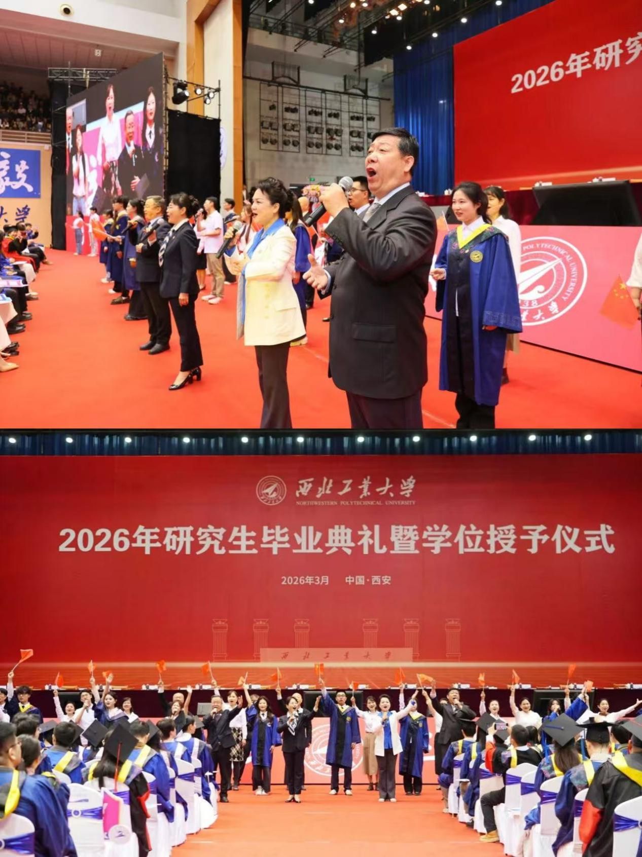 Before the ceremony, a graduation commemorative video titled Moments of Time was played on-site, evoking cherished memories of youth through familiar scenes. Following this, graduate representatives, together with the Faculty Choir and the University Student Art Troupe, performed a series of songs, including Goodbye, Cheers, and Blossom All the Way, and joined all attendees in singing The Motherland Will Not Forget. In their voices intertwined nostalgia and hope, along with the vows that NPU students made for the future—all converging into the most touching resonance of this spring.