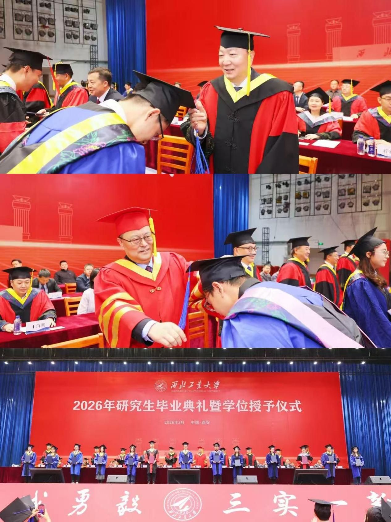 Li Yanrong, Chairman of Board of Trustees and Academician of the Chinese Academy of Engineering; Song Baowei, President of NPU, Chairman of the Academic Degree Evaluation Committee, and Academician of the Chinese Academy of Engineering; outstanding alumnus representative Liu Xiaoyong, Academician of the Chinese Academy of Sciences; Huang Wei, Director of the University Academic Committee and Academician of the Chinese Academy of Sciences; Li Hejun, Deputy Director of the University Affairs Committee and Academician of the Chinese Academy of Engineering; Zhang Weihong, Deputy Director of the University Affairs Committee and Academician of the Chinese Academy of Sciences; all university leaders; members of the Academic Degree Evaluation Committee; leaders from various graduate education units and relevant administrative departments; faculty representatives; parents representatives of graduates; and graduate representatives attended the ceremony. The ceremony was presided over by Vice President of NPU Wang Ling.