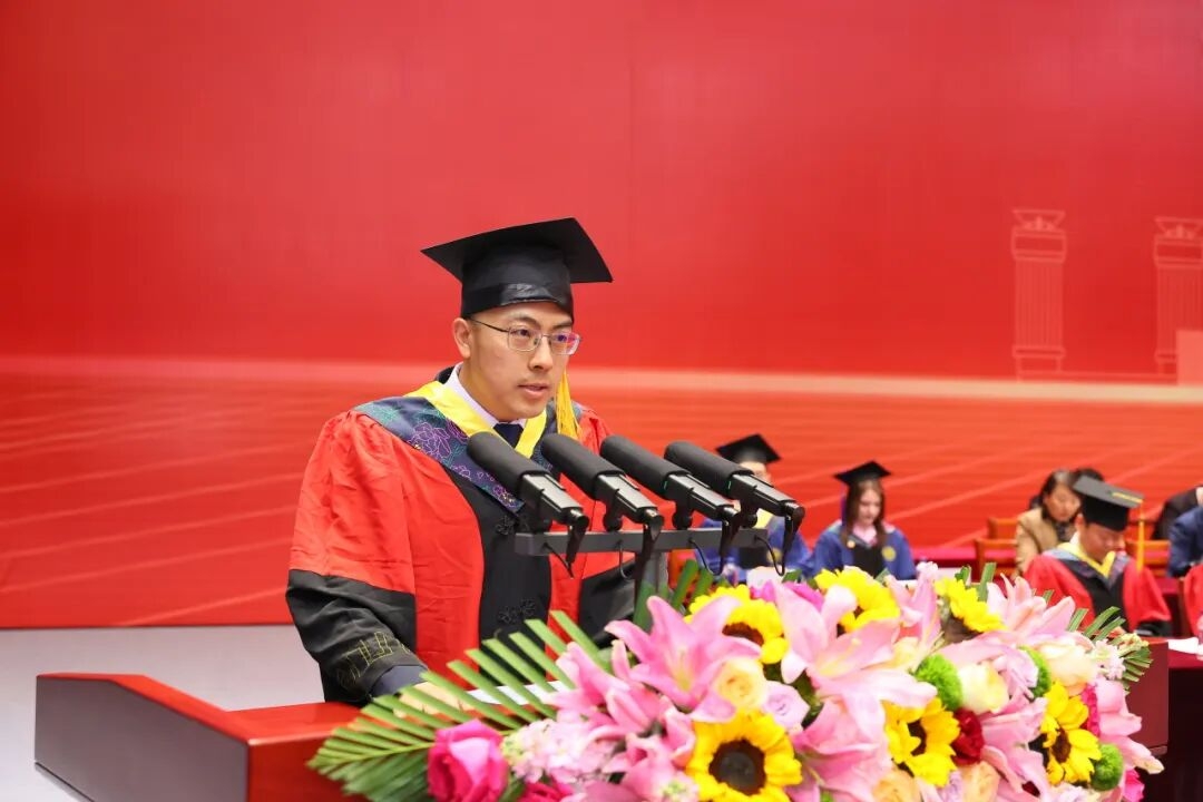 Amidst warm applause from the audience, Song Baowei, on behalf of all faculty, staff, and students, as well as Chairman of Board of Trustees Li Yanrong, extended sincere congratulations to the students on their successful completion of graduate studies, and expressed heartfelt gratitude to the dedicated teachers and families for their hard work. He then delivered a commencement speech to the graduates titled "Through a Thousand Waves, Still Keeping a Youthful Heart."