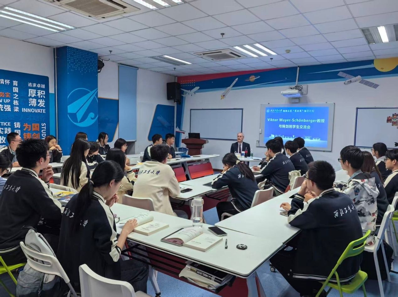 During his visit, Professor Mayer-Schönberger engaged in a warm discussion with representatives of the “Zhujian Class”, an elite program at NPU dedicated to cultivating top-notch innovative talents and bringing together outstanding students from diverse disciplines. In the discussion, students demonstrated thier curiosity for knowledge and vitality for innovation. The professor remarked that conversations with energetic young scholars are among the moments he most looks forward to, as they provide an opportunity to share academic ideas with the next generation and inspire their passion for data science.