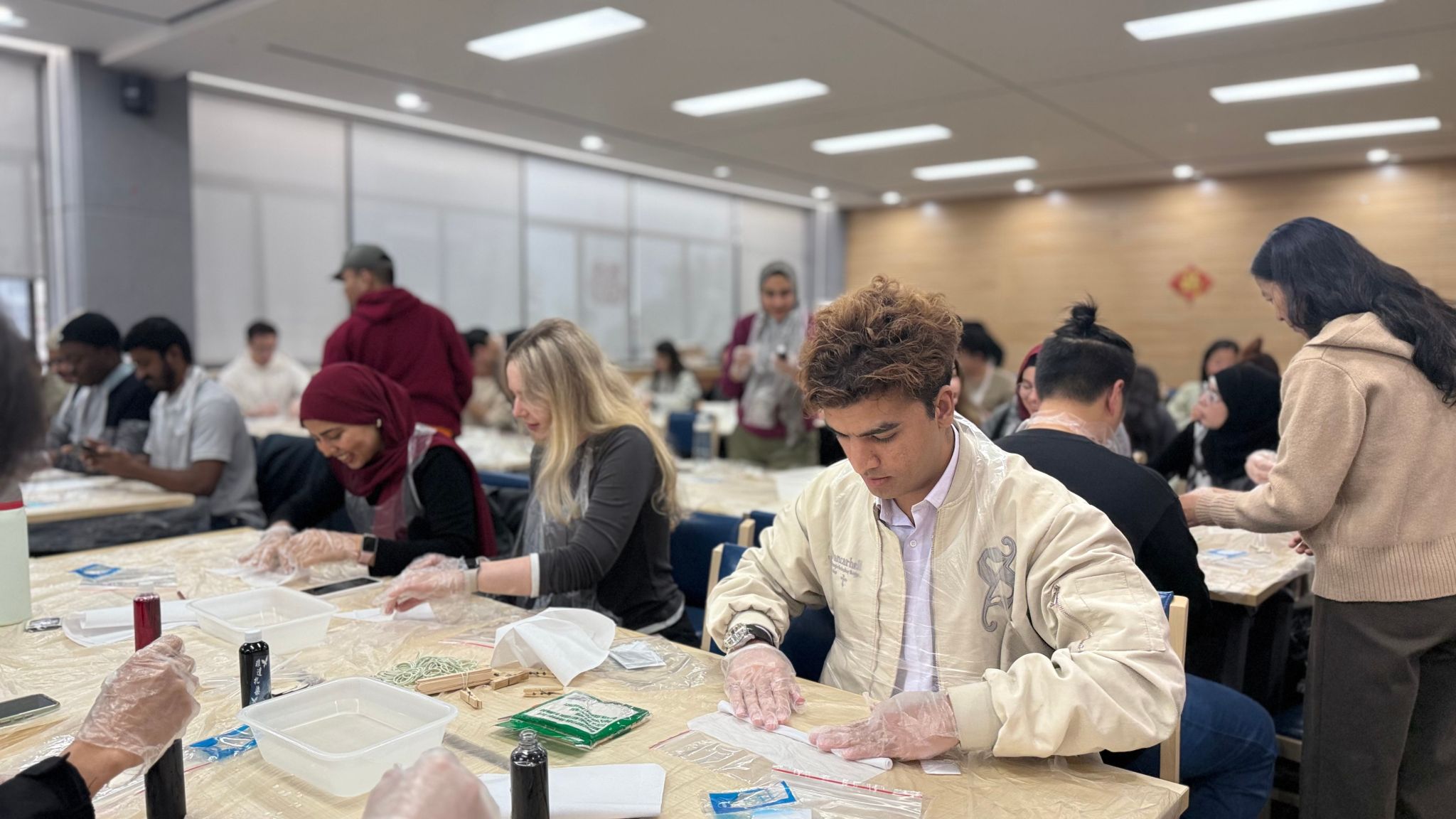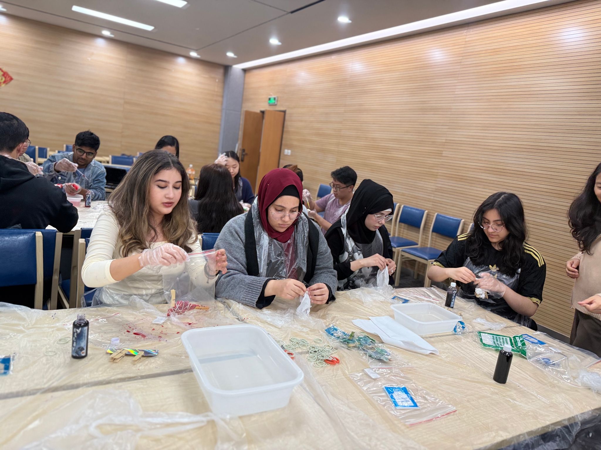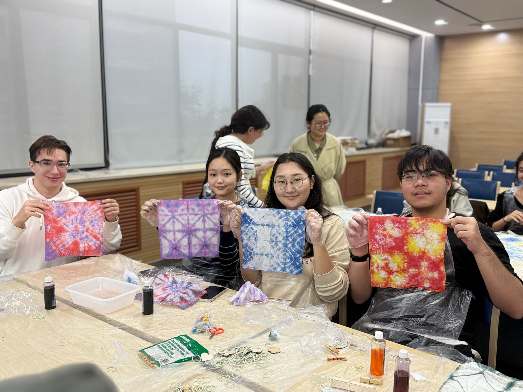 The “Cultural China” course recently launched a new session under the theme “Intangible Heritage China: The Art of Tie-Dye, A Symphony of Color and Craftsmanship.” The immersive practical class took place in Classroom C204, Haitian Yuan, Chang’an Campus, and attracted a diverse group of more than 40 international students from 11 countries.