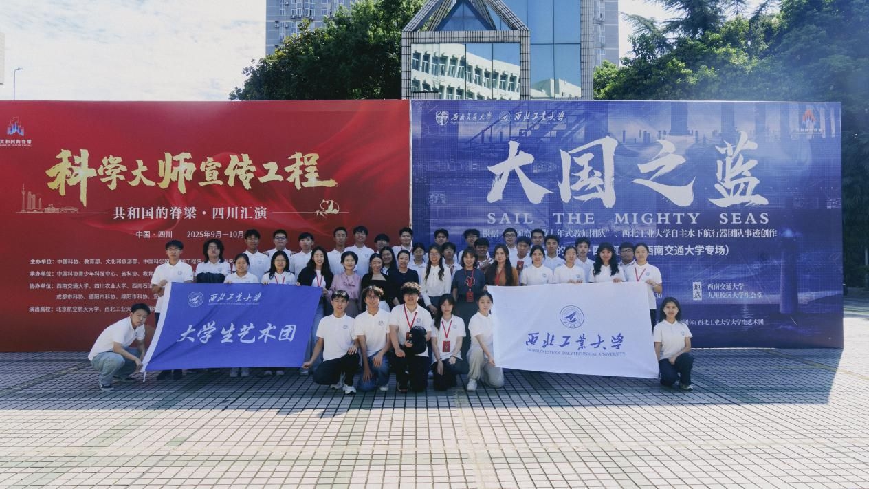 Recently, the original stage play The Blue of a Great Nation by Northwestern Polytechnical University (NPU) was invited to Chengdu as a featured production of the “Backbone of the Republic” Science Masters Promotion Project. It completed three tour performances at Southwest Jiaotong University on October 13, 14, and 15, where it received an enthusiastic response and thunderous applause from the audience.